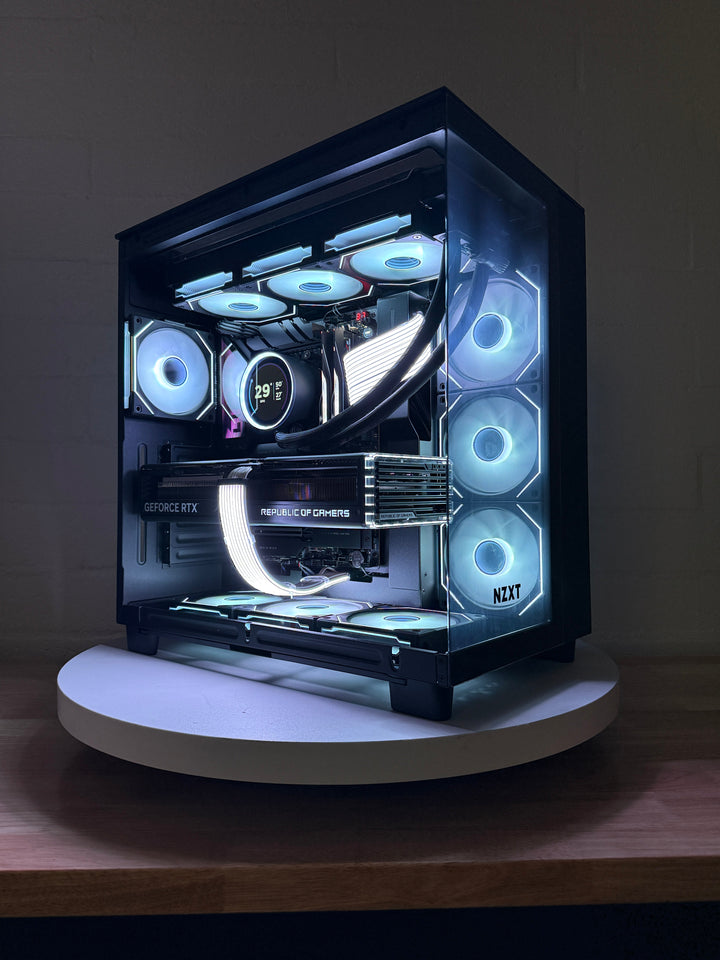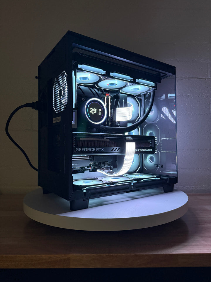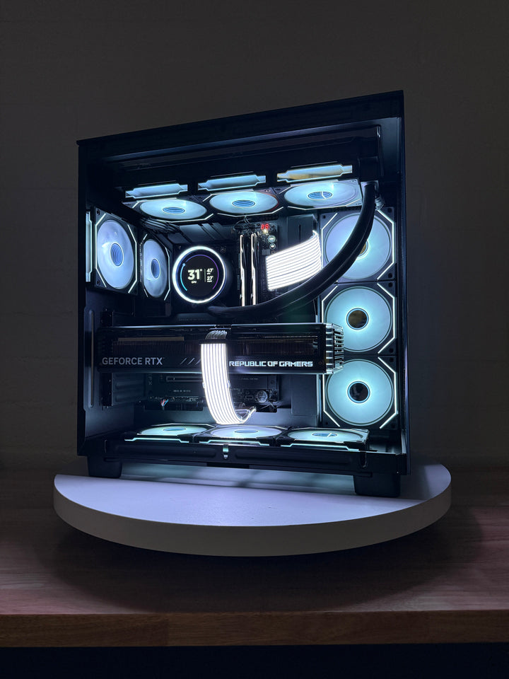 This build is just bonkers, what a cool case! This build features the ASUS ROG Strix RTX 4090 and the NZXT H9 Elite wears it well. If you are looking to make a statement with your gaming rig, this is the way to do it. We've used top-shelf parts and, honestly, can't get enough of this aquarium-like build. Highly recommend coming in and seeing this one in person.